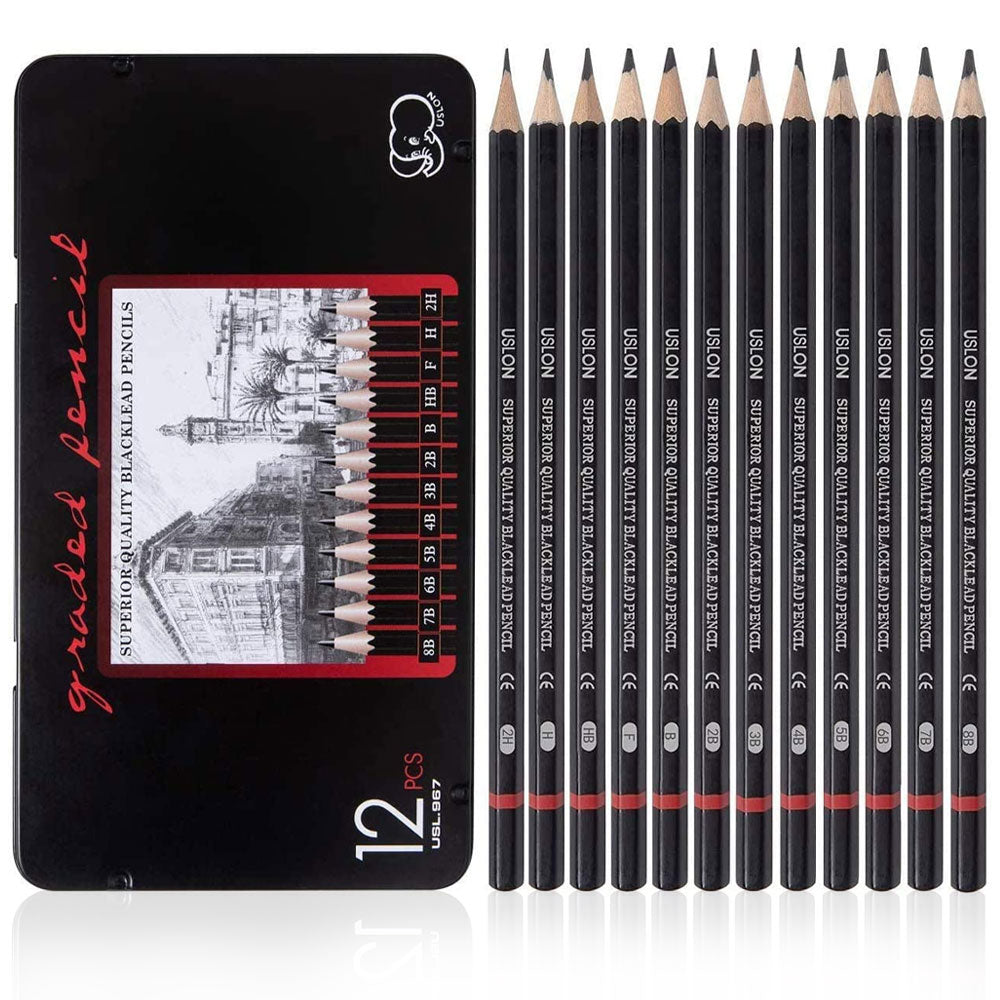 INCLUDES 12 GRAPHITE PENCILS:8B,7B,6B,5B,4B,3B,2B,B,HB,F,H,2H.