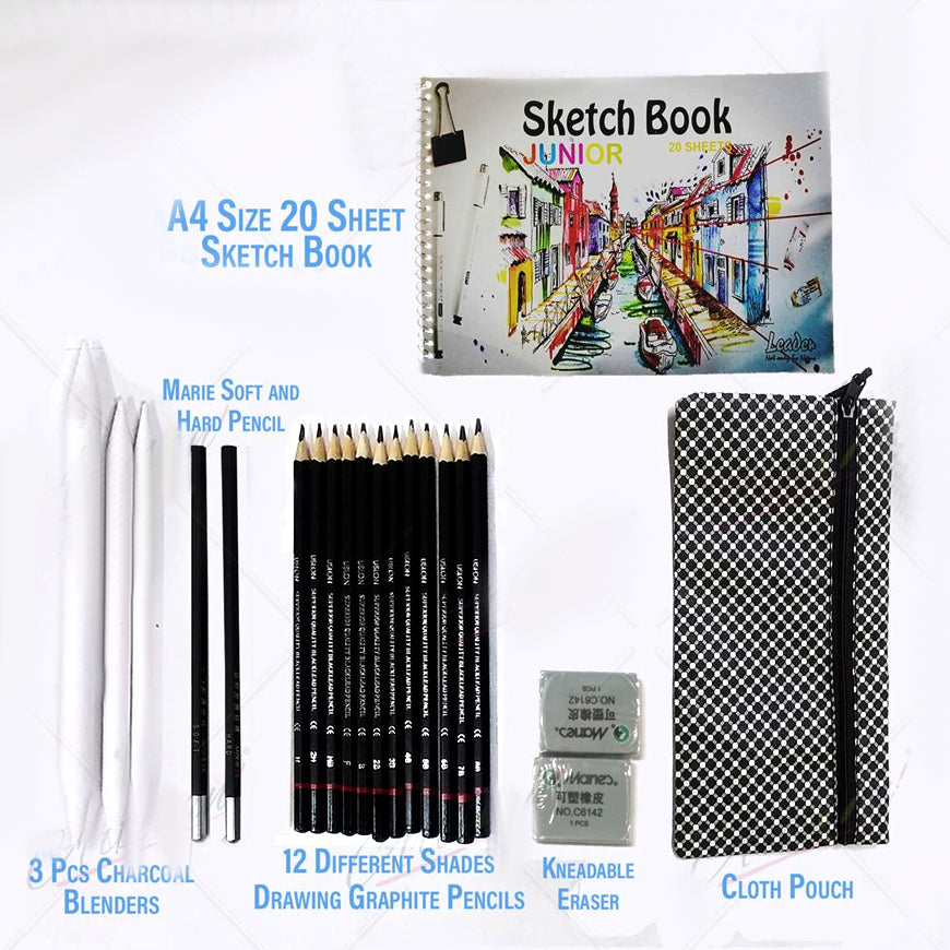 12 x Different Drawing Pencils (INCLUDES 12 GRAPHITE PENCILS:8B,7B,6B,5B,4B,3B,2B,B,HB,F,H,2H).