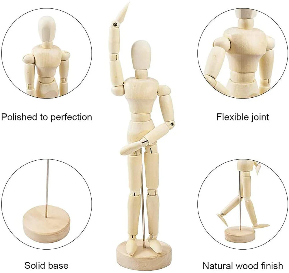 nlock the full potential of your artistic skills with our Artist Wooden Male Manikin. This high-quality wooden manikin is the perfect tool for artists who need a reliable reference for human anatomy and movement. Its fully adjustable joints and limbs allow you to create dynamic poses, making it an invaluable asset for sketching, drawing, painting, and sculpting. Crafted from smooth, polished wood, this manikin not only serves as a practical art tool but also adds an elegant touch to your studio. Ideal for both beginners and seasoned artists, this manikin helps bring your creative visions to life with accuracy and ease.