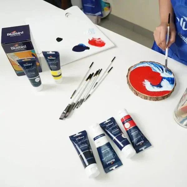 Signature Bluebird Signature Acrylic Colours 75 ml) are superior-quality water-based colors that provide artists with strokes of brilliant shade, fast drying and stability, water resistance, and a non-fading, durable finish. They are suitable for painting on porous surfaces like paper, canvas, fibreboard, craft foam, and wallpaper.