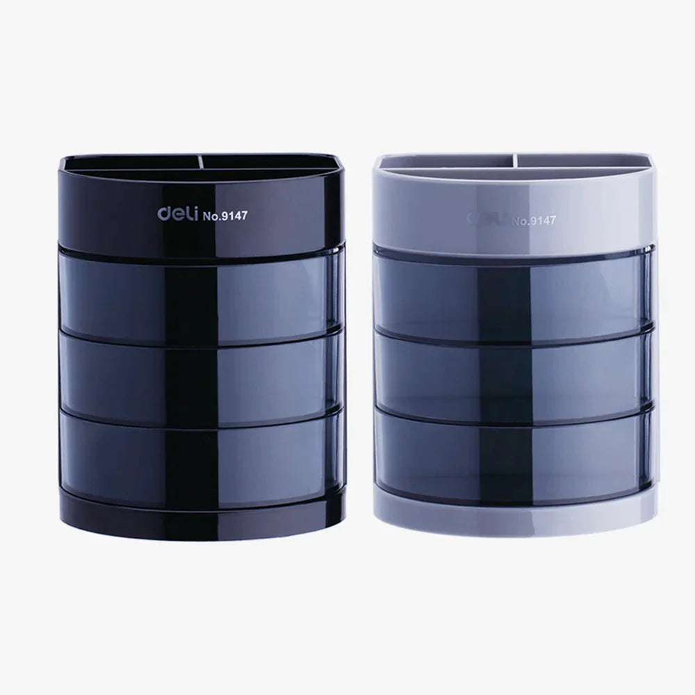 Enhance your desk organization with the Deli Pen Stand & Desk Organizer 3 Drawers E9147, a stylish and functional addition to any workspace. This organizer features three spacious drawers, perfect for storing pens, office supplies, and small accessories neatly. The top compartment serves as a convenient pen stand, keeping your writing tools within easy reach. Crafted from durable plastic, it offers stability and longevity. Its compact design saves space while adding a touch of elegance to your desk. Ideal for offices, home offices, or classrooms, this desk organizer helps streamline your workflow and keep essentials organized.