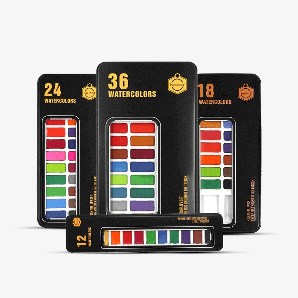 Keep Smiling watercolor set in tin box such a perfect choice for those who love to make a watercolor artwork. Its solid watercolor pigment is made successfully via special concentrated technology. This watercolor will give you a colorful and brightness effect, the color is easy to melt and well blend. The transparent (aquarell) effect allows the light to come through and reflect from the white paper, which makes the colors glow. This non-staining watercolor also not fade over time. It is also durable, sun-proof, easy to carry for outdoor use.