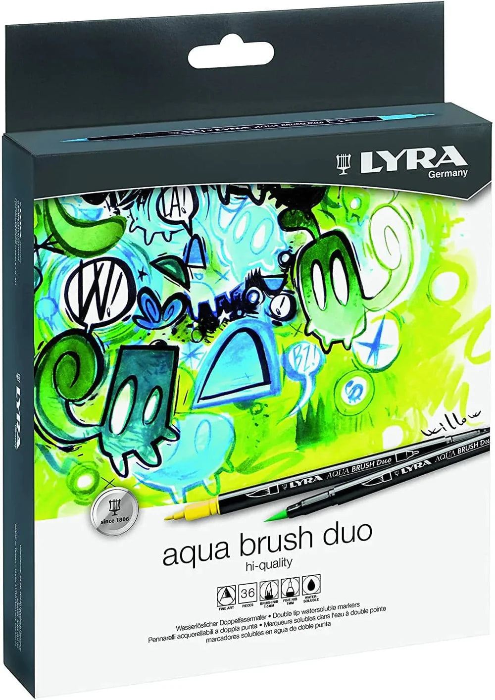 Experience unparalleled versatility with the Lyra Aqua Brush Dual Tip Markers Set. Each marker features a flexible brush tip for broad strokes and a fine tip for detailed work, making it perfect for artists, designers, and hobbyists alike. The vibrant, water-based ink blends seamlessly, allowing you to create stunning watercolor effects with ease. Ideal for sketching, illustrating, and hand lettering, these dual-tip markers offer exceptional control and precision. Elevate your artistic projects with the superior quality and performance of Lyra Aqua Brush Markers.