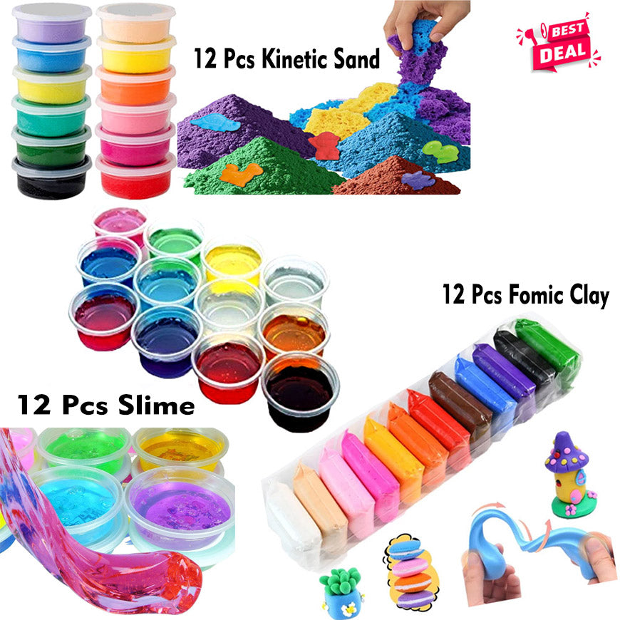 12 Pcs Slime: A pack of 12 different slimes in various textures, from smooth and stretchy to fluffy and glittery. The perfect sensory experience, this slime offers hours of satisfying play, helping with stress relief and promoting tactile exploration.
