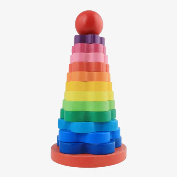 This Rainbow Tower wooden toy is a fun and educational stacking toy designed for toddlers and young children. Made from high-quality wood with bright rainbow colors, it helps improve hand-eye coordination, color recognition, and problem-solving skills.