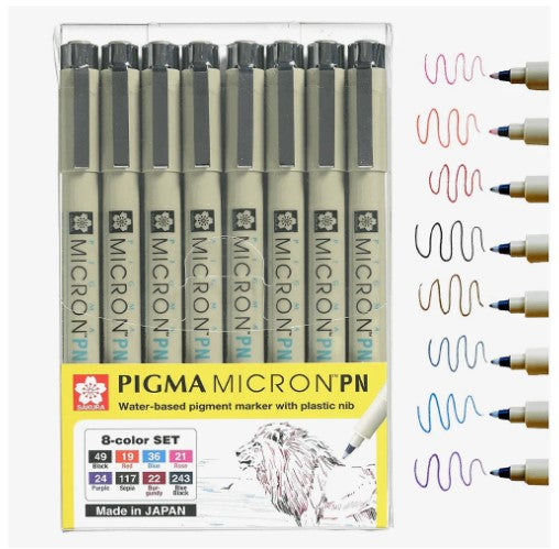 The Sakura Pigma Micron Color Pen Pack of 8. Known for their archival-quality ink, these pens deliver vibrant and consistent lines that are waterproof, fade-resistant, and suitable for various artistic endeavors. Each pen in this set features a durable 0.4mm tip that allows for detailed drawing, sketching, and writing. Perfect for illustrators, designers, and crafters, the Sakura Pigma Micron Color Pens are ideal for creating intricate designs, outlines, and adding precise details to artwork. Whether you're working on scrapbooking, journaling, or professional illustrations, these pens offer reliability and performance.