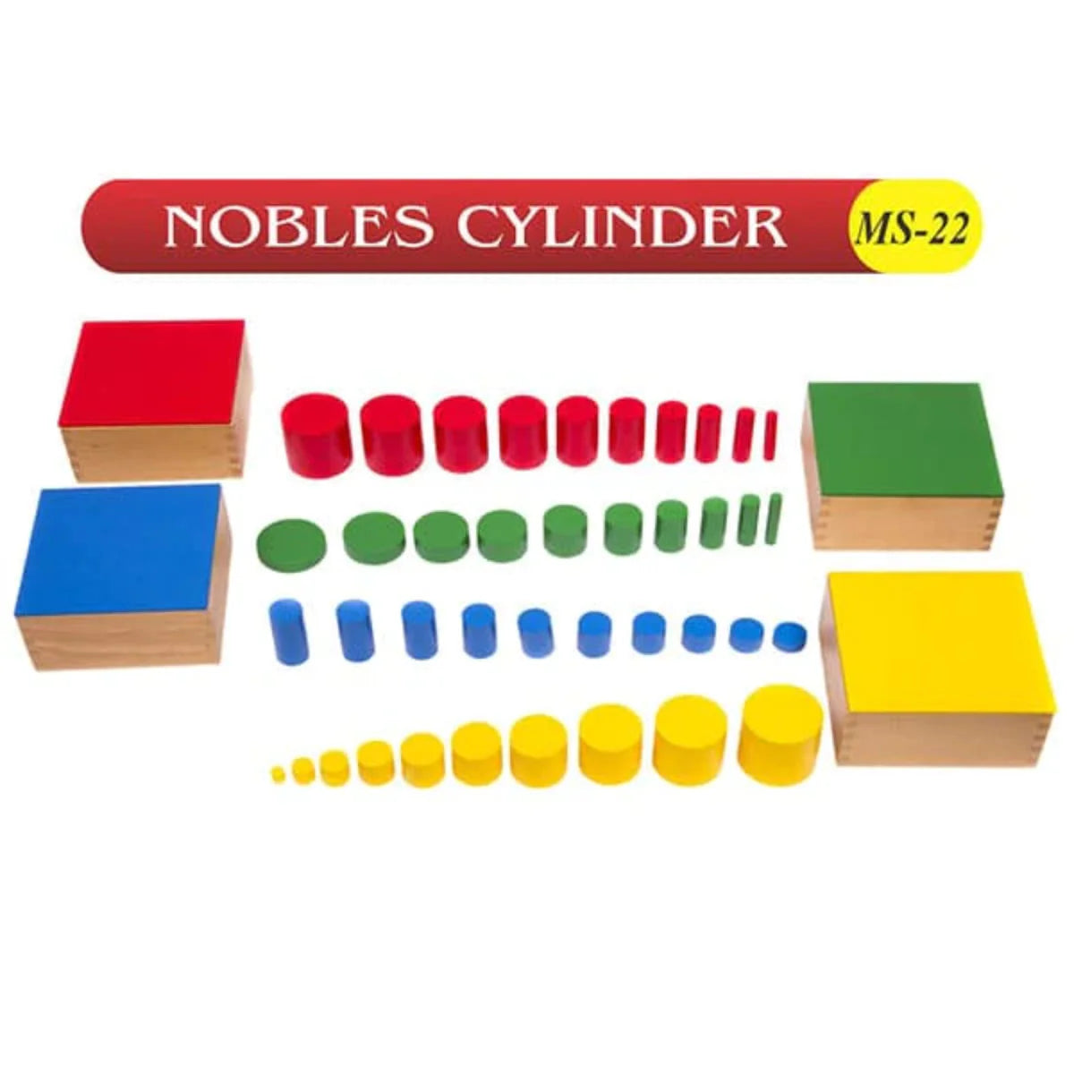 The Montessori Knobless Cylinders are an essential educational tool designed to enhance children's understanding of size, dimension, and volume. Each set includes four different colors, each representing a distinct series of cylinders varying in height and diameter. This hands-on learning material encourages children to engage in activities that develop their fine motor skills, spatial awareness, and problem-solving abilities. Perfect for preschool classrooms and home learning environments, the Knobless Cylinders offer a tactile and visual approach to exploring mathematical concepts and fostering cognitive development.